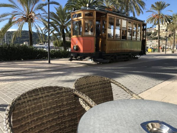 Direkt unten am Wasser findet sich ein Eissalon, der ein phantastisches Orangen-Basilikum-Eis aus Soller anbietet. Unmittelbar vor den Tischen fährt die historische Straßenbahn im Pendelverkehr vom Hafen nach Sóller und zurück. Sie ist die Ergänzung der Bahnlinie Tren de Sóller, die in Palma startet. Das Teilstück musste quasi angebaut werden, um die förderfähige Gesamtlänge der Strecke zu erreichen. Und wenn man schon mal so weit im Norden ist, kann man auch noch Fornalutx, Inca, Binissalem, Port de Pollenca und Port d´Alcúdia besuchen. Unsere nächsten Ziele verraten wir jetzt aber noch nicht. Etwas Spannung muss schließlich sein!